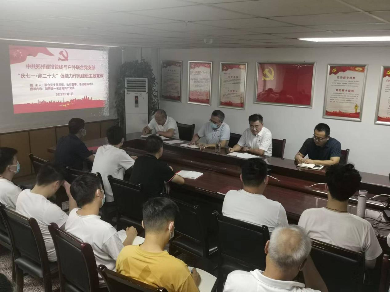 2022年7月1日,中共郑州建投管线与户外联合党支部组织全体党员和管线公司全体干部职工,在一首《没有共产党就没有新中国》大合唱中,建投管线与户外联合党支部拉开庆祝中国共产党成立101周年,迎接党的二十大胜利主题党日活动。