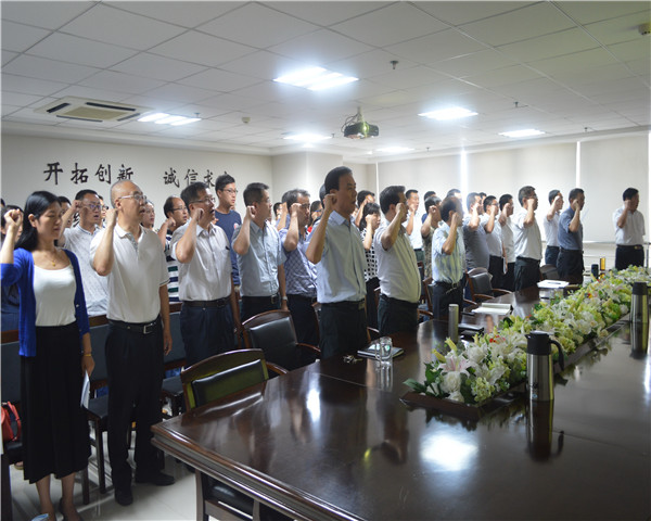 会议进行第一项,全体人员起立,唱国歌。嘹亮高昂的义勇军进行曲响彻整个会议室、整个华体会体育-华体会(中国) ,歌声振奋同志们的意志,更加坚定了对党的信仰。
