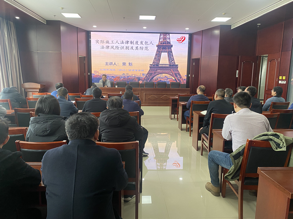 本次培训邀请了上海市建纬(郑州)律师事务所栗魁主任进行授课,主讲的内容是《实际施工人法律制度发包人法律风险识别及其防范》。本次培训,栗魁主任从实际施工人制度的来源对发包人的多重风险及生成逻辑进行了深入浅出的讲解,又结合《最高人民法院关于审理建设工程施工合同纠纷案件适用法律问题的解释》对相关法律问题进行详细解读和分析,使与会人员对建设工程施工合同纠纷法律诉讼中的有关问题有了深刻的理解。